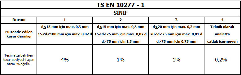 - Soğuk çekim prosesi kaynaklı; stres çatlağı, hadde çiziği,